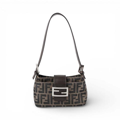 Borsa Fendi modello Mamma Baguette Moon realizzata in Tela Zucca Marrone con dettagli in Pelle tono su tono e parti metalliche in metallo argento. Design compatto dalla forma a mezzaluna. Chiusura a patta con bottone magnetico e logo FF. L’interno è foderato in tessuto e presenta una pratica tasca con zip. In ottime condizioni generali con normali segni d’uso e micrograffi su parti metalliche. Guarda attentamente tutte le foto del prodotto prima di effettuare l'acquisto. Questo semplice gesto può aiutare a ridurre il numero di probabili resi contribuendo all'economia