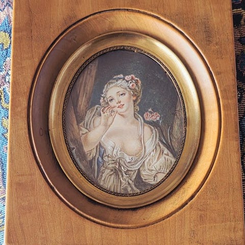 Den sidder i en smuk ramme bag glas, dateret fra det 19. århundrede.