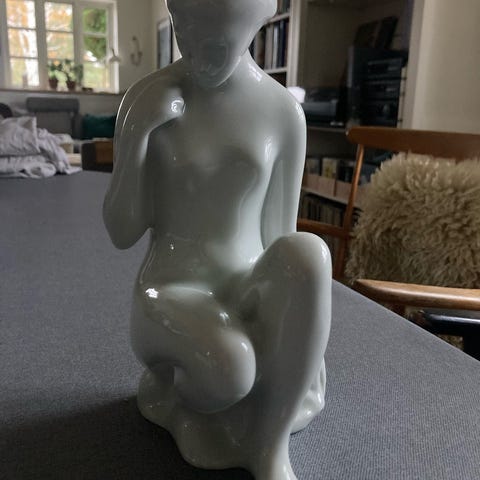 Porcelænsfigur fra Royal Dux af en stigende hingst, ca. 37 cm høj, produceret omkring 1960 i Tjekkoslovakiet, brun, dimensioner 19 x 9 x 37 cm, i god stand med mindre alderspletter. Klik på den blå "gå til varen" knap, for at købe eller byde på denne vare. Den samlede pris vil blive vist inden du afgiver dit bud.
