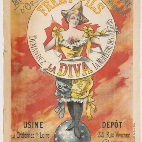Stort dekorativt tryk med høj visuel virkning, ideelt for samlere af Liberty-grafik, franske teaterplakater og ældre affischer, også perfekt som