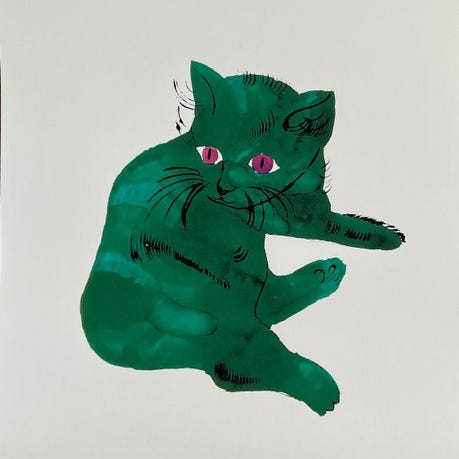 Dette er en smuk reklameplakat trykt i offset litografi for det franske mærke af naturligt mousserende mineralvand Perrier af den kendte amerikanske kunstner Andy Warhol (1928-1987). Plakaten viser tre flasker Perrier i forskellige farver, hvor den grønne og blå flaske overlapper hinanden.