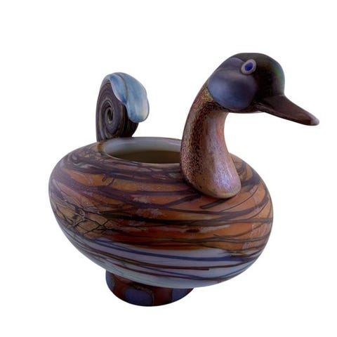 Glas-skulptur med guld indlagt. Udført af en meget erfaren glaskunstner. Vi har købt kunstværket af ham i hans atelier på Murano.