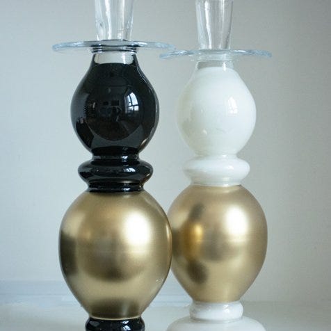 Spring tilbage til Venedig i 90'erne, og du vil finde fantastiske vaser lavet af en mand, der besad kunstnerisk talent og karakter. Disse glas er fremstillet i fantastiske transparente farver: rubin og grøn. Disse vaseglas er valgt fra hjertet af mig selv, produceret med teknikken rigadin, som Carlo Scarpa elskede.