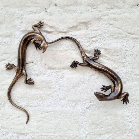 To bronzefarvede snegle i god stand med små tegn på ældning og pletter, estimeret periode 2020+, hver måler 10 cm i højden, 18 cm i længden og 8 cm i dybden, oprindelse Europa. Klik på den blå "gå til varen" knap, for at købe eller byde på denne vare. Den samlede pris vil blive vist inden du afgiver dit bud.