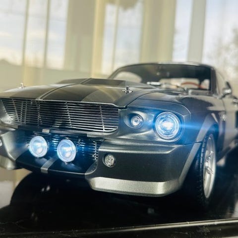 1:8-skala rekonstruktion af Ford Mustang GT Shelby 1967 i hvidmetal, ca. 59 cm lang og næsten 8 kg tung, med fungerende forlygter, i god stand og uden original emballage. Klik på den blå "gå til varen" knap, for at købe eller byde på denne vare. Den samlede pris vil blive vist inden du afgiver dit bud.