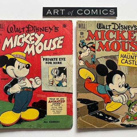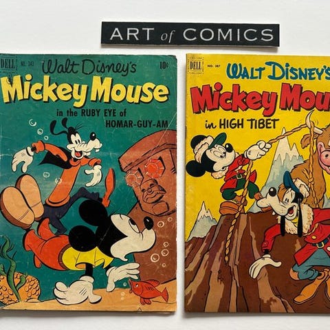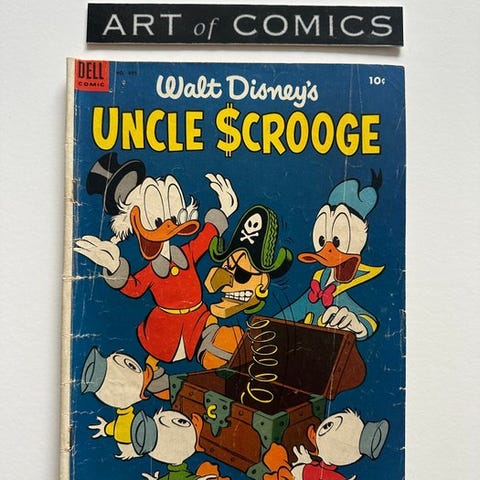 Fem Dell Comics Four Color tegneserier, første udgave, af Carl Barks, i meget god stand. Klik på den blå "gå til varen" knap, for at købe eller byde på denne vare. Den samlede pris vil blive vist inden du afgiver dit bud.