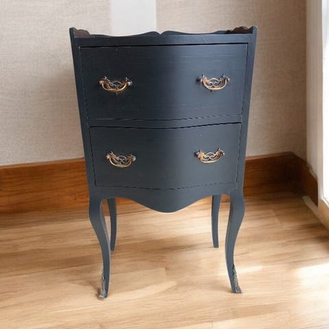 Den øverste side med messinggaleriet giver plads til to låger og en skuffe.