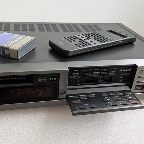 Sony EV-C45E Video8 stereo optager i meget god fysisk stand, testet og funktionsdygtig; medfølger strømforsyning, fjernbetjening ikke original, uåbnede Sony8 MP60-kassetter og brugte Sony8 MP-kassetter, samt SCART-indgang/udgang, kontakter og LP/EP-optagelse. Klik på den blå "gå til varen" knap, for at købe eller byde på denne vare. Den samlede pris vil blive vist inden du afgiver dit bud.