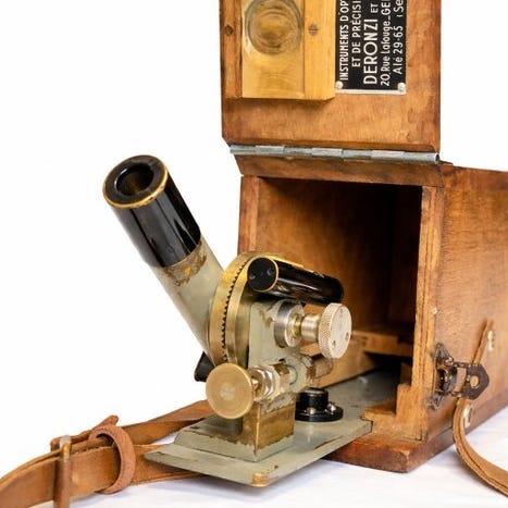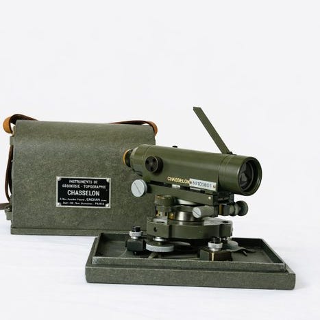 Et sjældent ældre præcisionslandmålingsinstrument af theodolittype, fremstillet af SLOM – Paris, Nr. 254.