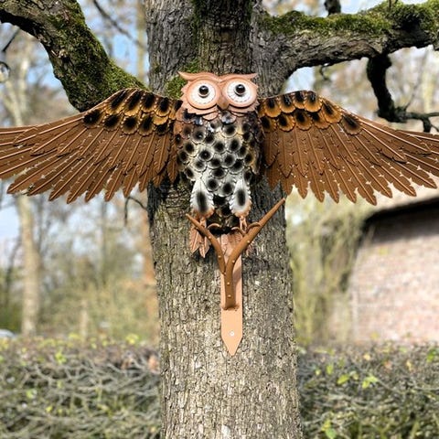 Stilfuld støbejernsugle. Smuk haveudsmykning. Støbejernshaveornament. Rustpatinaen udvikler sig med sæsonen og vejret. Din skulptur kan derfor vise mere eller mindre rust ved modtagelsen end på billedet. Dimensionerne er som følger (+/-):