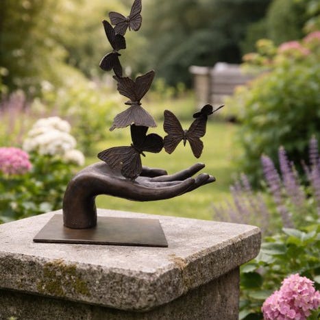 Statue, Large: Bronze Lady with Bird - 43 cm - Bronze