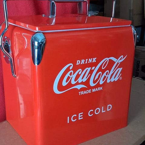 Bærbar køleboks (ikke elektrisk) fra det legendariske amerikanske sodavandsmærke Coca-Cola, køleboksen er NY og aldrig brugt i sin originale kasse.
