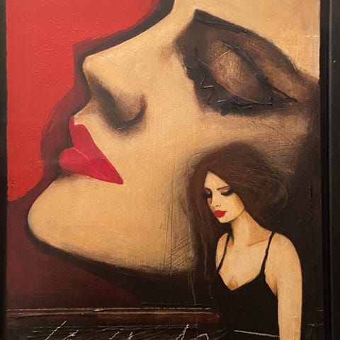 Carlo Del Sole, fresco og blandet teknik på træplade fra 2011. Målinger: 95 x 95. Titel: Refleksioner. Signeret og dateret på bagsiden som certifikat for ægthed, altid på bagsiden. Oprindelse: privat samling og første gang erhvervet direkte fra kunstneren i hans studie i Brescia.