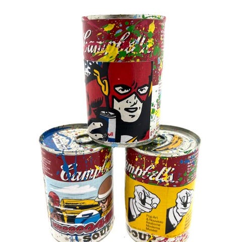 Minnie Loves Bubblegum x Campbell’s Soup har mange ikoner på denne skulptur. Dåsen er blevet fyldt med rød epoxy, og Minnie træder frem på smukkeste vis. En rigtig begrænset udgave Campbell’s Soup-dåse fra USA er blevet brugt.