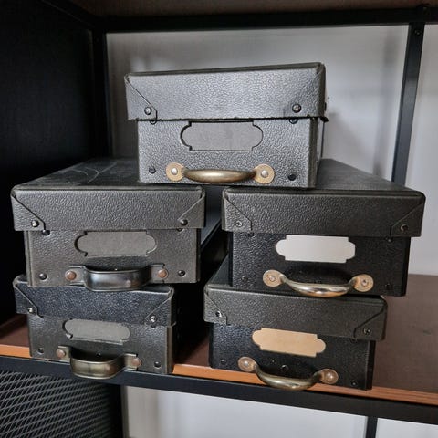 Lod af tre vintage kassette til film i mahogni til kameraer i storformat, ca. 1960–1970, i god stand og ikke testet, ydre mål 24 cm × 16 cm × 1,5 cm. Klik på den blå "gå til varen" knap, for at købe eller byde på denne vare. Den samlede pris vil blive vist inden du afgiver dit bud.