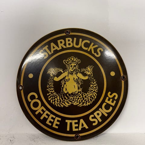 Dette unikke samlerobjekt viser et flerfarvet Starbucks-logo emalje porcelæns skilt.