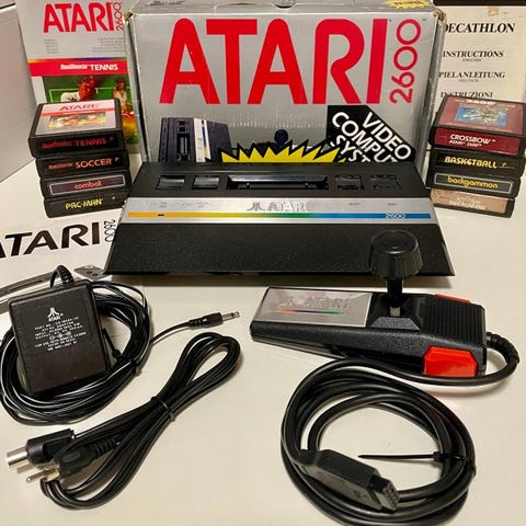 ** Atari-konsollen, joysticks og spil er alle rensede og 100% funktionsdygtige