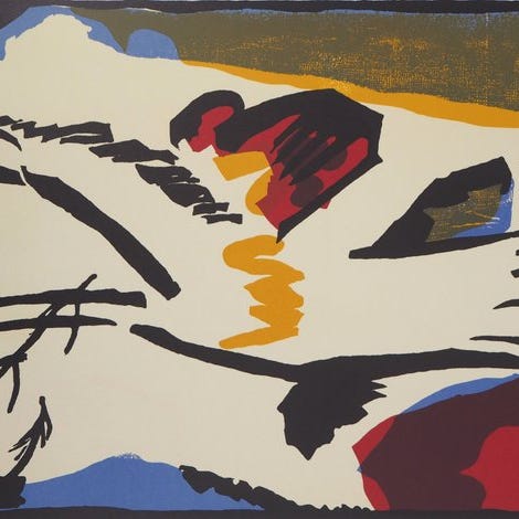 Vassily Kandinsky, Composition en rouge, 2003, offsettryk i begrænset udgave på tykkere papir (60 × 80 cm), signeret i pladen, i fremragende stand. Klik på den blå "gå til varen" knap, for at købe eller byde på denne vare. Den samlede pris vil blive vist inden du afgiver dit bud.