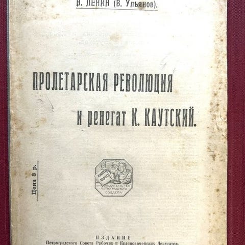 Første udgave på russisk af Lenin, Doklad i Zaklyuchitelnaya Rech na 3-m Vserossiyskom Syezde sovetov rabochikh i soldatskikh deputatov, udgivet i 1919 af Zentralkomitee der Räte i Moskva, uindbundet med skødsel, 16 sider, 20,8 × 14,1 cm, tilstand moderat. Klik på den blå "gå til varen" knap, for at købe eller byde på denne vare. Den samlede pris vil blive vist inden du afgiver dit bud.