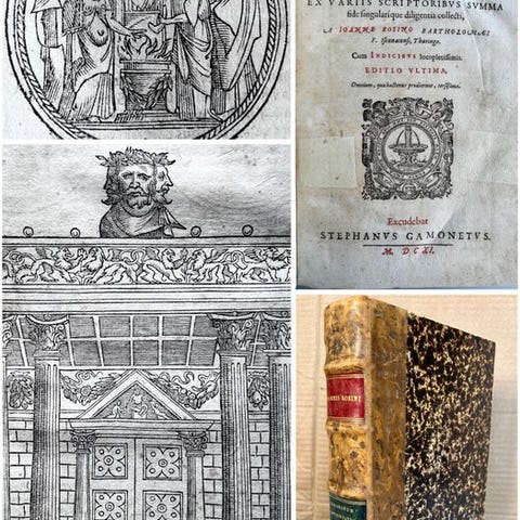 Julius Caesar eller historien om kejsere og romerske kejsere udarbejdet ud fra antikke mønter – første bog. Tilkommet C. Ivlii Caesaris vita et res gestae. Huberto Goltz. Herbipolita venloniano forfatter og gravør - Brugge, Goltzius, 1563 - graveret titelblad (32) 57 tavler (verso blank) (6) 231 (37) sider - pergamentbind