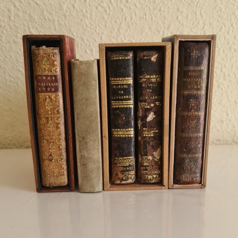 Matteo Scalfati. Historiske erindringer om militære operationer under kommando af kongen af Sicilien, Ferdinand IV. Napoli, af Simoniana Press, 1774. Første udgave. Ekstremt sjælden originaludgave af beretningen om de militære manøvrer, der blev afholdt i oktober 1773 i Granatello under kong Ferdinand IVs personlige ledelse. En meget detaljeret beretning om denne usædvanlige begivenhed, midt imellem en militærfest, en parade og en krigsøvelse. Hele den bourbonske militærkontingent, både til lands og til søs, var delt i to sider: angriberne (under kommando af kongen selv) og forsvarerne, der var involveret i kamp