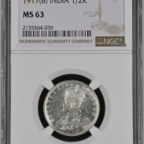 Sølvmønt præget i Calcuta-myntmønten under det britiske koloniale Indien, under kong George VI's regering. Forsiden viser kongens kronede profil, vendende mod venstre, med det kejserlige motto. Bagsiden viser pålydende værdi, land og dato inden for en udsmykket blomsterkrans bestående af symboler for Storbritanniens nationer. Dette stykke har veldefinerede detaljer og en tiltalende glans, og er certificeret af NGC i grad MS64.