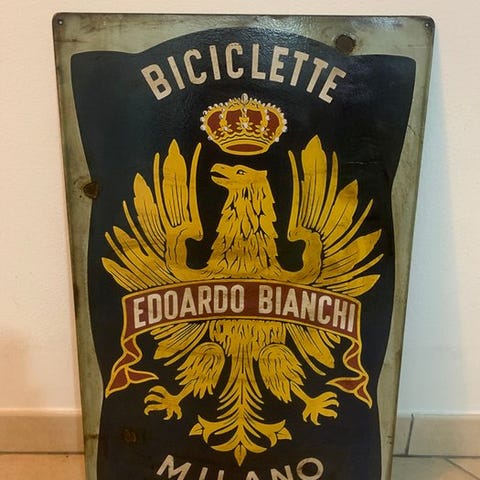 Originalt pudslet jernskilt til Cycles Panneton, fremstillet i Frankrig af Neuhaus sgim Paris; mål 68 cm høj, 48 cm bred og 1 mm tyk; tilstand: god med nogle slidmærker og pletter fra alder. Klik på den blå "gå til varen" knap, for at købe eller byde på denne vare. Den samlede pris vil blive vist inden du afgiver dit bud.