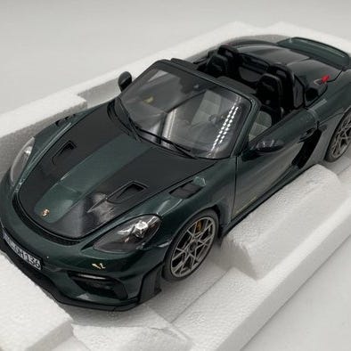 Norev Porsche Cayman GT4 RS i 1:18-skala i Brewster Green, ny, i originalt forseglet etui. Klik på den blå "gå til varen" knap, for at købe eller byde på denne vare. Den samlede pris vil blive vist inden du afgiver dit bud.