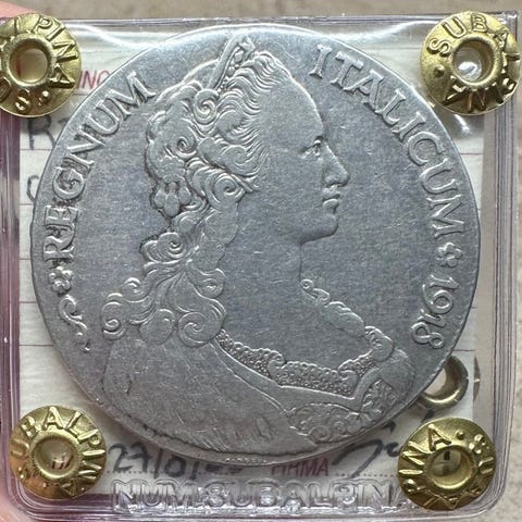 Mønt fra Kongeriget Sardinien: Carlo Emanuele III, 1/4 Scudo, 1756, sigillata SPL+, fra Numismatica Subalpina.