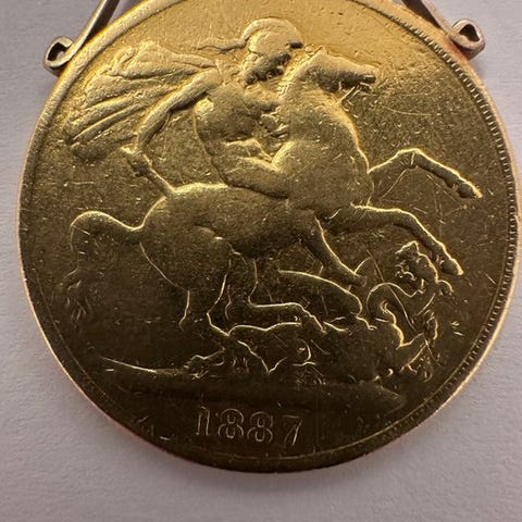 - Rovescio: San Giorgio med en kappe, der hænger ned fra hjelmen, på hesten, mens han dræber dragen med sværdet. Datoen er under linjen med inskriptionen med små bogstaver B.P. til højre.
