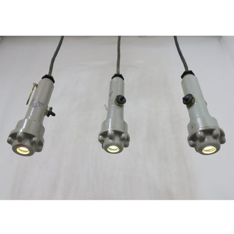 Robuste tekniske lamper, formodentlig af militær oprindelse, anvendt i felttelte eller køretøjer under nødsituationer. Designet tyder på brug i barske omgivelser – enkle, holdbare og funktionelle.