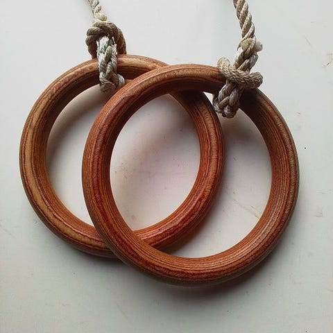 Pragtfuldt sæt af gymnastikringe fra 60'erne.