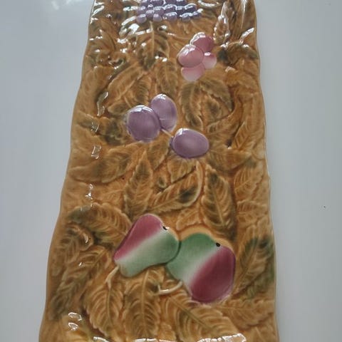 Smukt ovalt Art Déco-fad i sølvfarvet metal.
