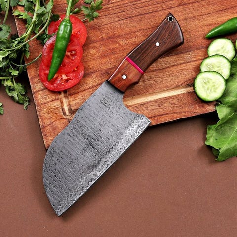 Denne enestående håndlavede køkkenkniv har et slagkraftigt stålblad, smedet i flere lag for at skabe et smukt naturligt mønster. Bladet tilbyder udmærket skarphed, holdbarhed og kantbevarelse, hvilket gør det ideelt til præcisionsskæring og daglig brug i køkkenet.
