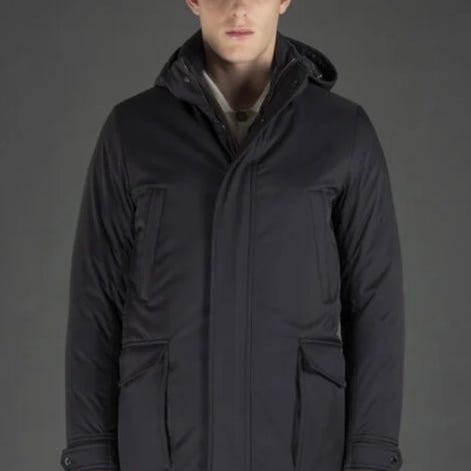 Original Moorer herrejakke, vatteret, fremstillet i et teknisk stof af høj kvalitet. Elegant og tidløs design, lukning med lynlås og knapper, finish omhyggeligt udført ned til mindste detalje. Et ikonisk stykke inden for italiensk luksus.