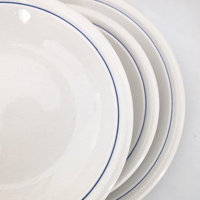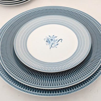 Sjældent tallerkensæt fra 1929 fremstillet af Società Ceramica Italiana Manifattura di Laveno, som senere blev en del af gruppen Richard Ginori, og dekoreret med et raffineret blomstmønster i tydelig Art Deco-stil.