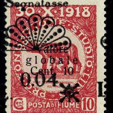 Fiume 1919 - Sort cifret segnatasse, 3 værdier med maskinskrevet overtryk på ...