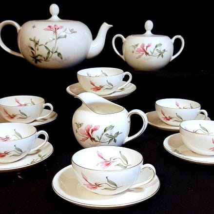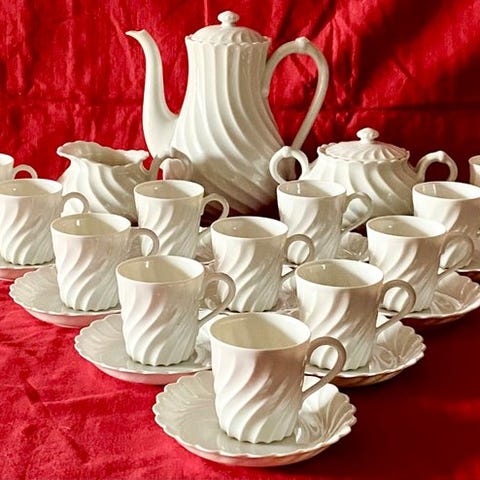 Et te-service bestående af 10 kopper og 10 underkopper, i Limoges-porcelæn, fra fabrikken Haviland.