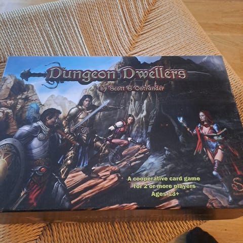 The New Dungeon brætspil. Klassisk fantasy-baseret brætspil med dungeon-tema, skeletter og monstre illustreret på æsken. Spillet egner sig til bordspilshygge og kan spilles af flere deltagere omkring et bord. Yderligere specifikationer om antal spillere, spilletid og anbefalet alder fremgår normalt af æsken eller vejledningen. Komplet.