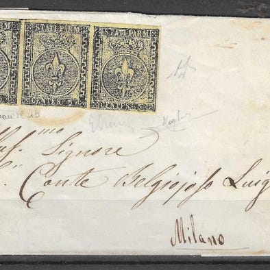 Hele forsendelsen er frimærket efter første porto-takst for breve sendt fra Kongeriget Italien første afstand til Østrigs tredje afstand, manglende med 25 centesimer og derfor afgiftsbelagt ved destinationen.
