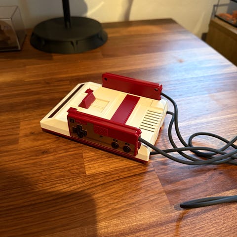Her præsenteres en usædvanligt velbevaret Nintendo Classic Mini Family Computer i guld, et officielt Nintendo-produkt udgivet i 2016 i Japan.