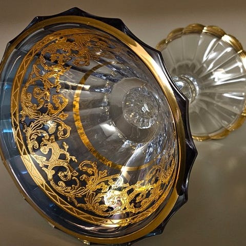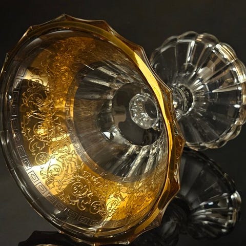 Pragtfulde krystalglas, yderst sjældne og med stor effekt, vidunderligt udskårne og dekorerede, elegante og af klasse, ideelle til vigtige lejligheder, fuldstændigt håndslebet og gravureret, mundblæst af glasmestre.