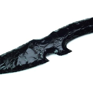 Se denne udsøgte 12" kniv, et fantastisk paleocraft-mesterstykke designet til museumshistorikere, kræsne samlere og entusiaster af enestående lithisk kunstneri.