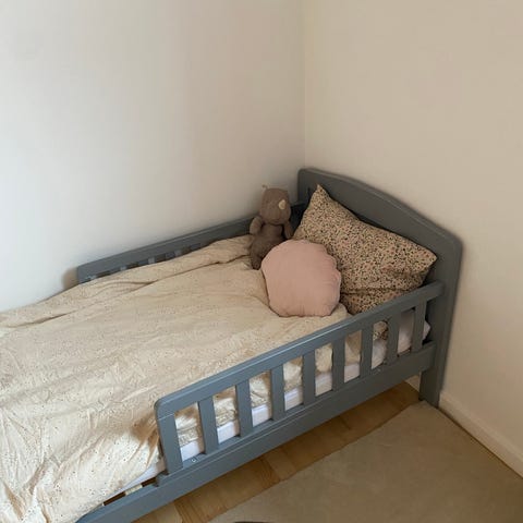 JLY Heaven grå juniorseng 70*140 med Babymatex carpathia tosidet madras i skum.