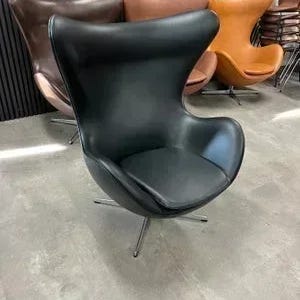 Arne Jacobsen 3316 Ægget Vip, Returdrej, Nypolstret i lækkert Sort Premium læder