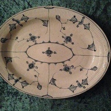 Royal Copenhagen Musselmalet Riflet Halvmåne Fad med Guld No. 402 Måler 44,5cm x 18,5cm / 17.52 inch x 7.28 inch