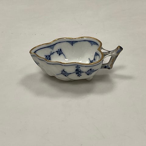 Royal Copenhagen Musselmalet Riflet Halvmåne Fad med Guld No. 402 VI SENDER