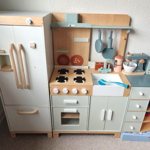 Legekøkken fra Tender Leaf str. medium. Fra 2023. Brugt til leg af to børn. Alt fungerer som det skal. Har naturlige skrammer fra leg.
