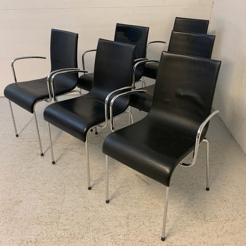 Stol med stel i lyst træ og polstrede sæder og ryglæn i lilla mønstret tekstil. har 50 stk sælges samlet der er både med og uden armlæn