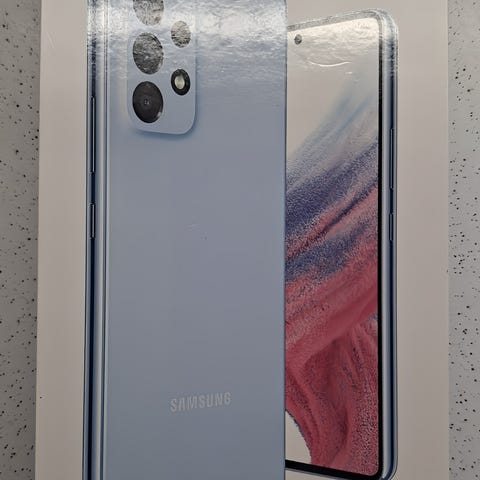 Samsung Galaxy A-serie smartphone med 128 GB intern hukommelse. Telefonen fremstår i sort farve med stor skærm i fuld frontdesign og frontkamera i skærmens øverste midte. Bagsiden har flerlinse-kamerasystem med LED-blitz. Enheden egner sig til almindelig daglig brug som opkald, beskeder, internet, sociale medier, foto og video samt lagring af apps og filer med den indbyggede lagerkapacitet på 128 GB.